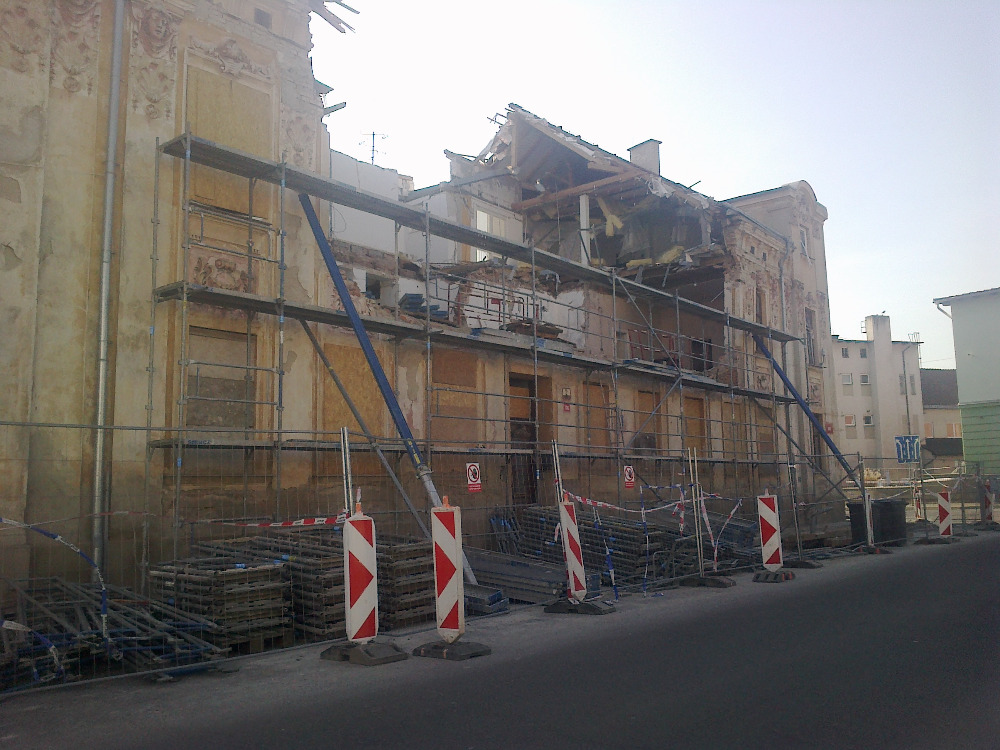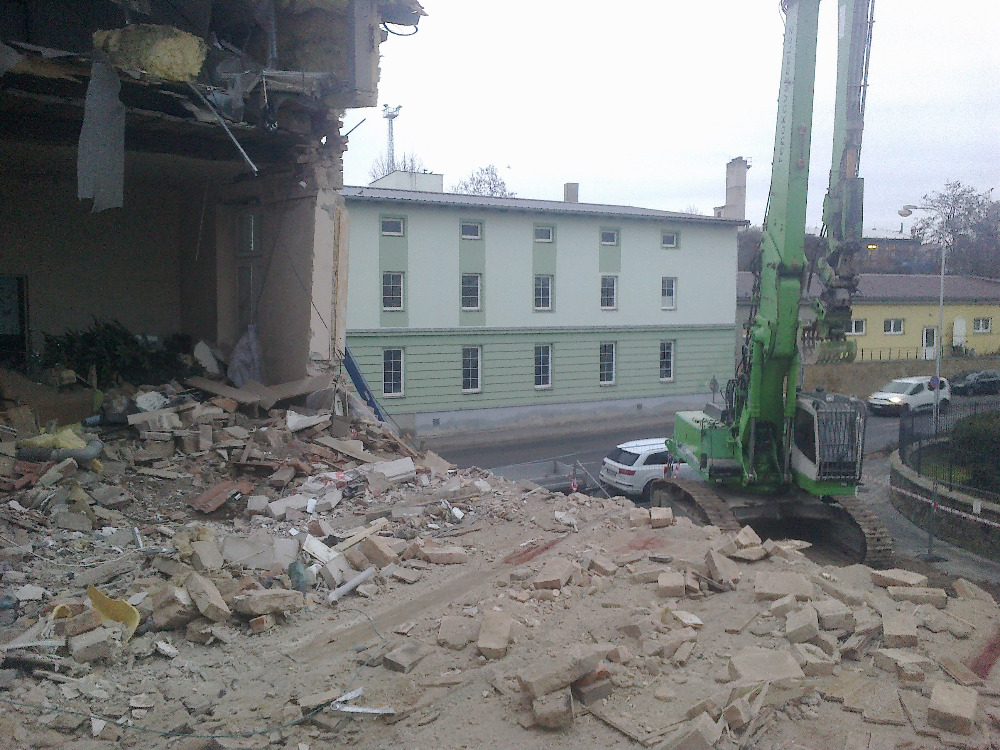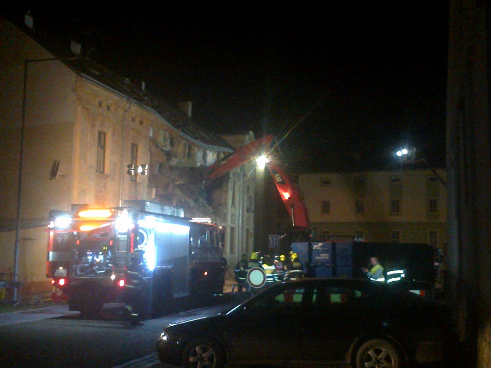 Znojmo - částečná demolice po výbuchu plynu.